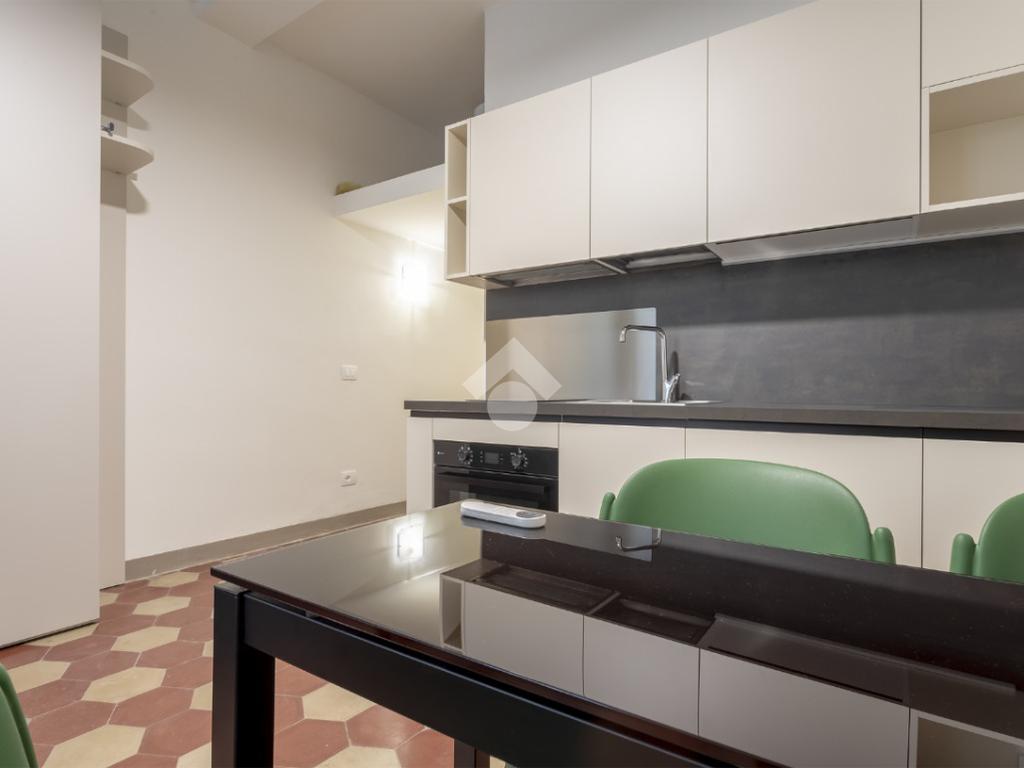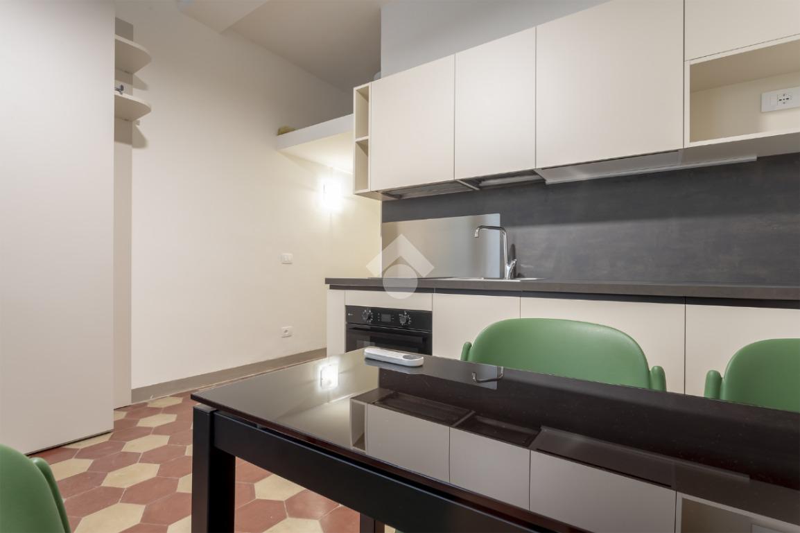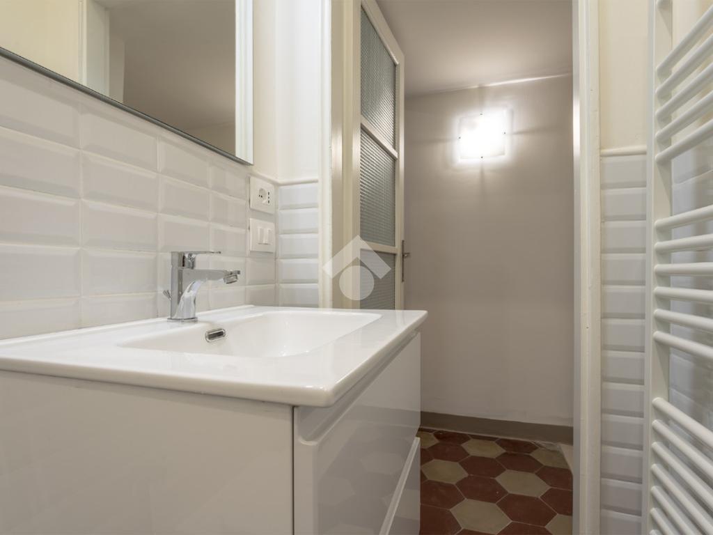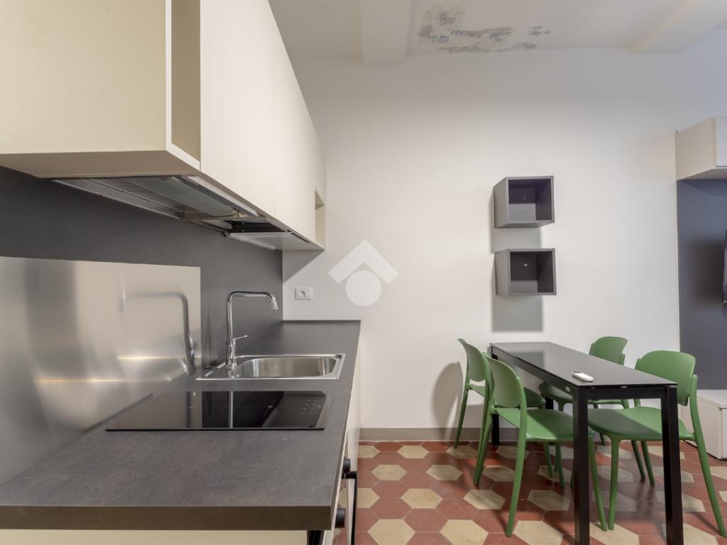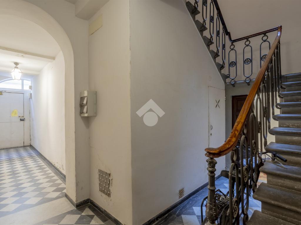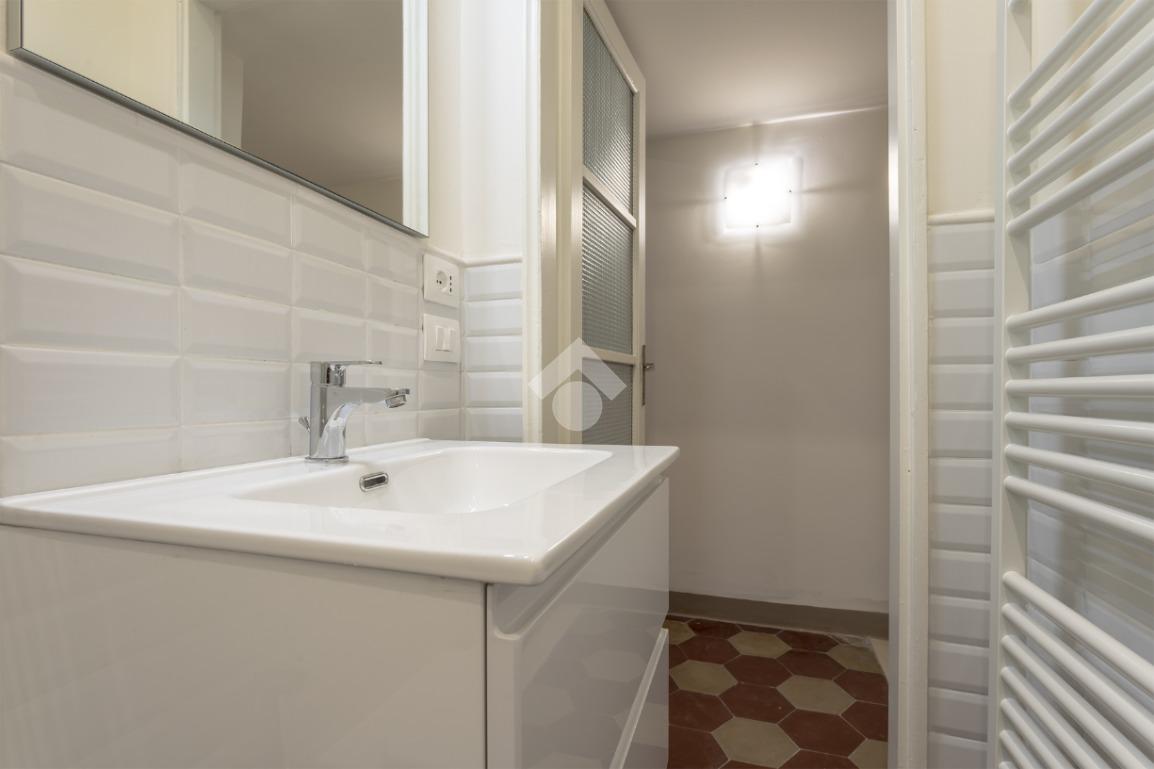 Il monolocale, situato in un classico palazzo del Centro Storico, è composto da un ingresso a corridoio, in cui a sinistra troviamo un bagno con box doccia a vetro.