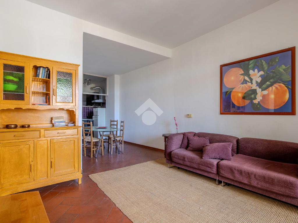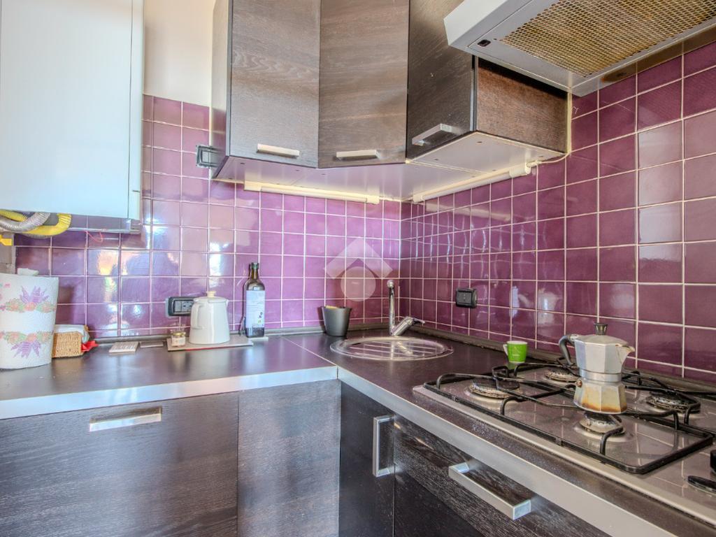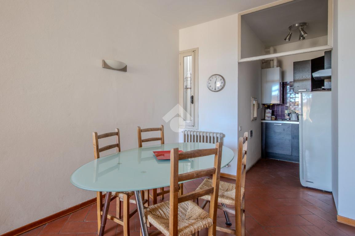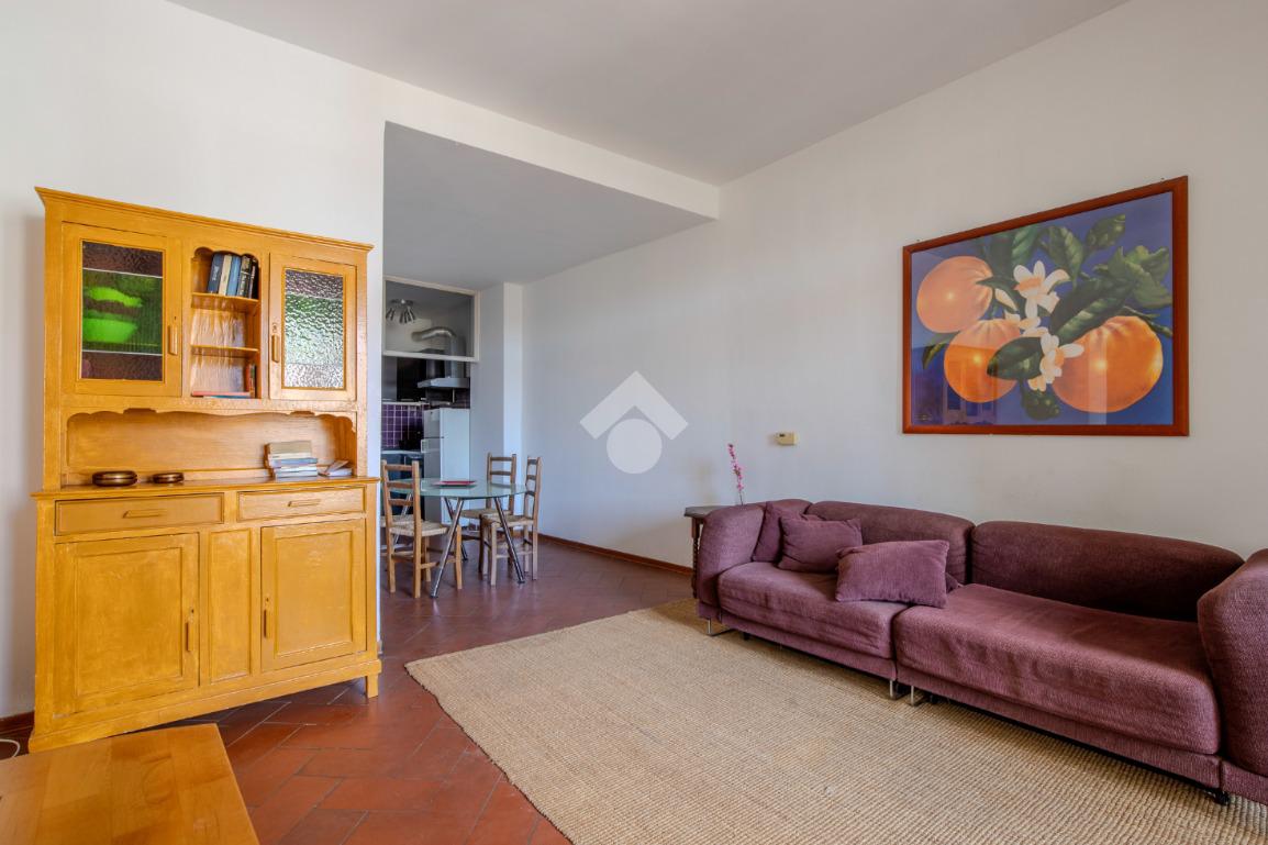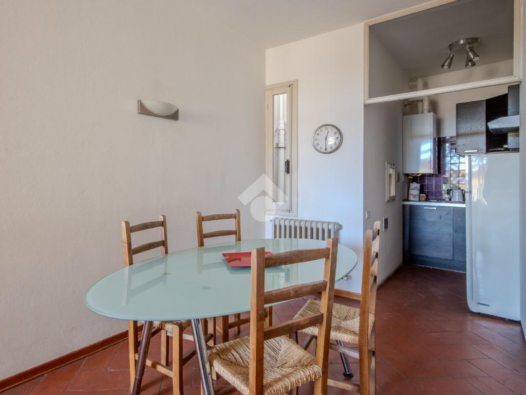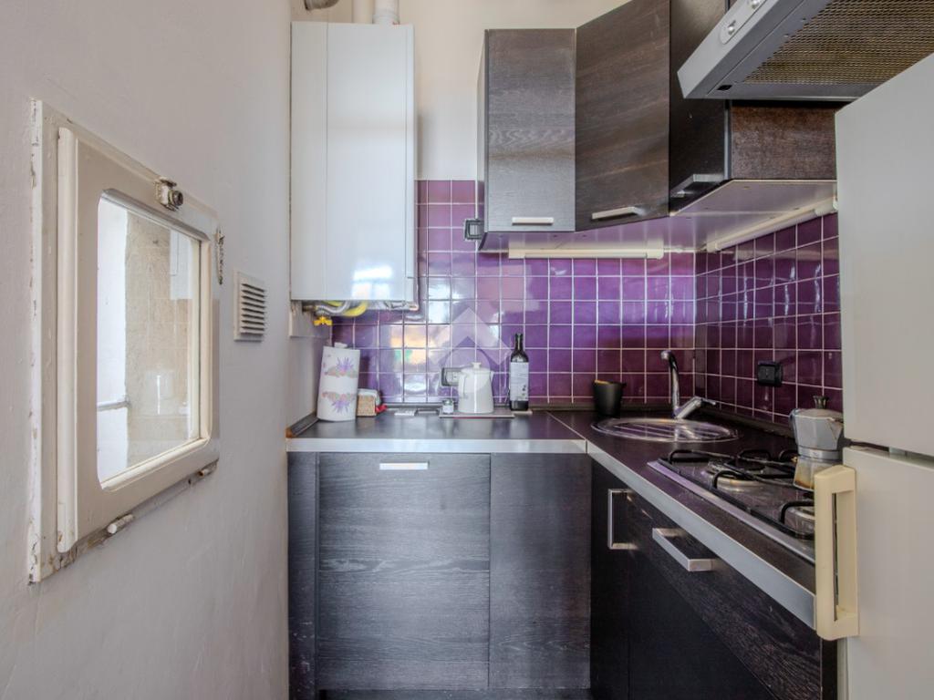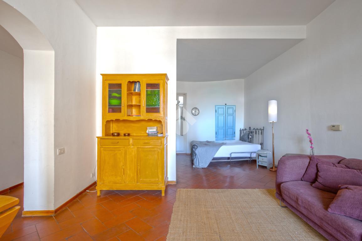 La zona giorno, che affaccia direttamente sul terrazzino abitabile, prosegue in un secondo ambiente, adibito attualmente a sala da pranzo, anche esso finestrato che si conclude in un cucinotto.