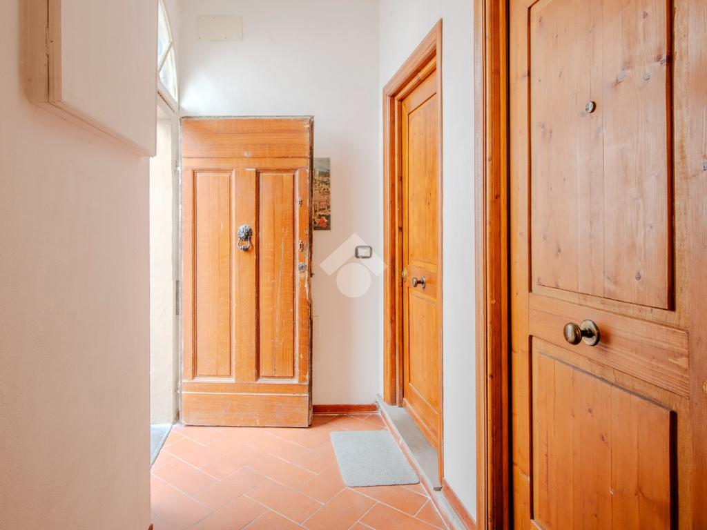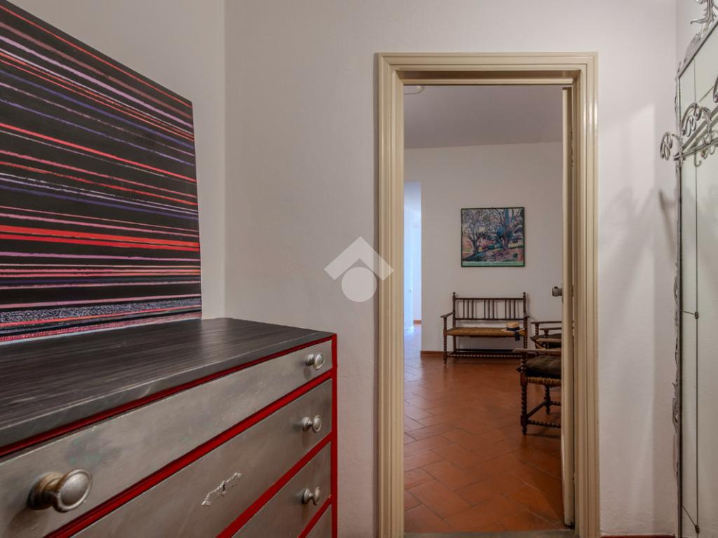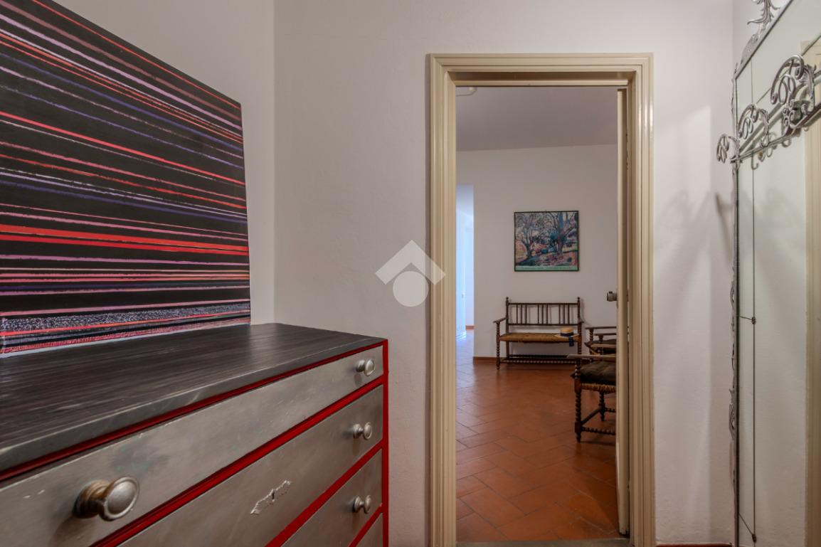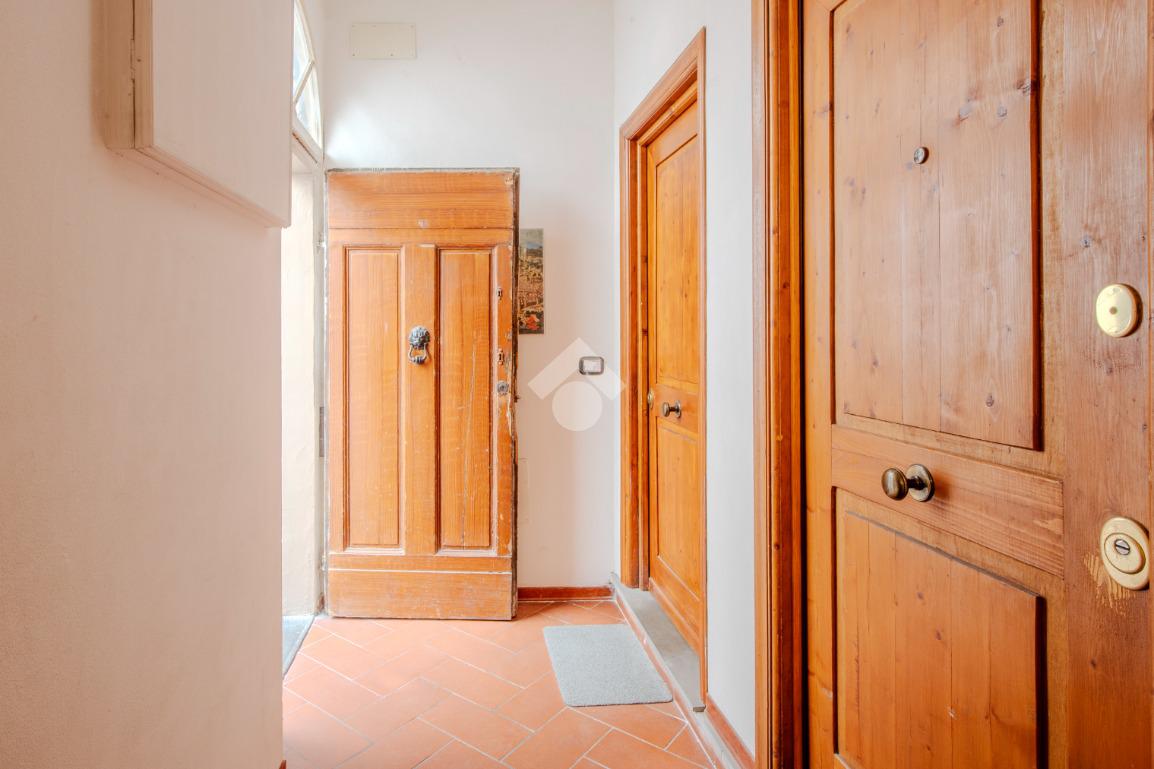 L'immobile si apre su un disimpegno che conduce a un primo ambiente finestrato e di passo per il proseguo dell'appartamento.