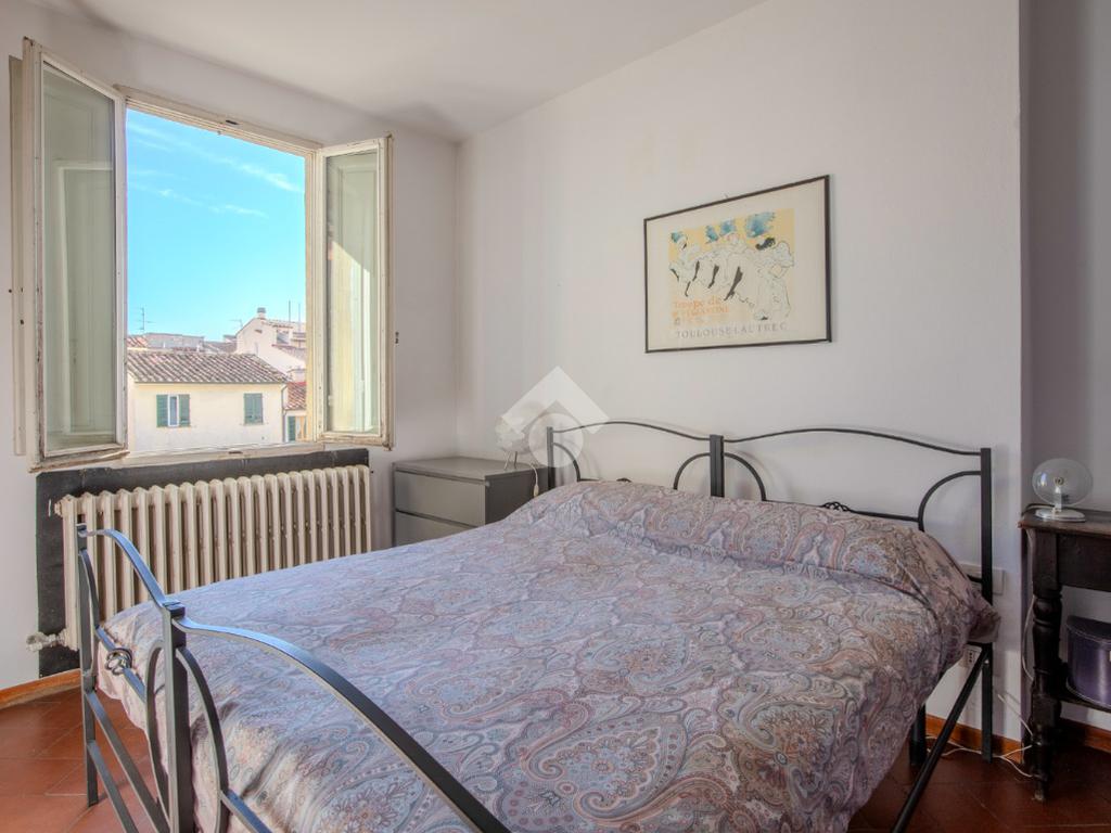 Sulla sinistra troviamo poi il bagno finestrato, sulla destra arriviamo prima alla camera matrimoniale con vista duomo e poi all' ampia zona giorno.