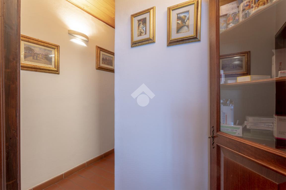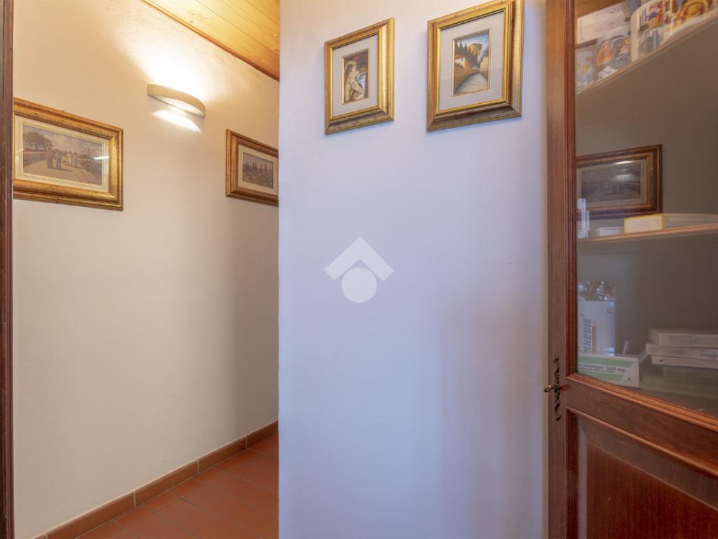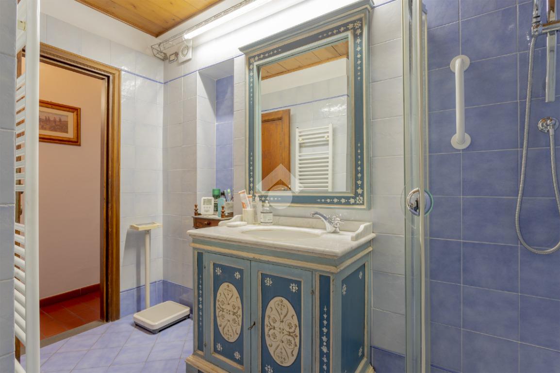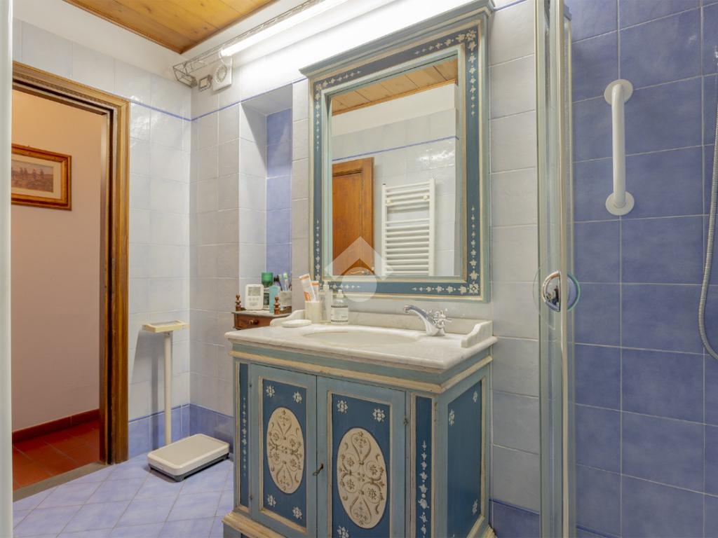 Proseguendo invece lungo il corridoio, troviamo il primo bagno, dotato di box doccia in vetro.
