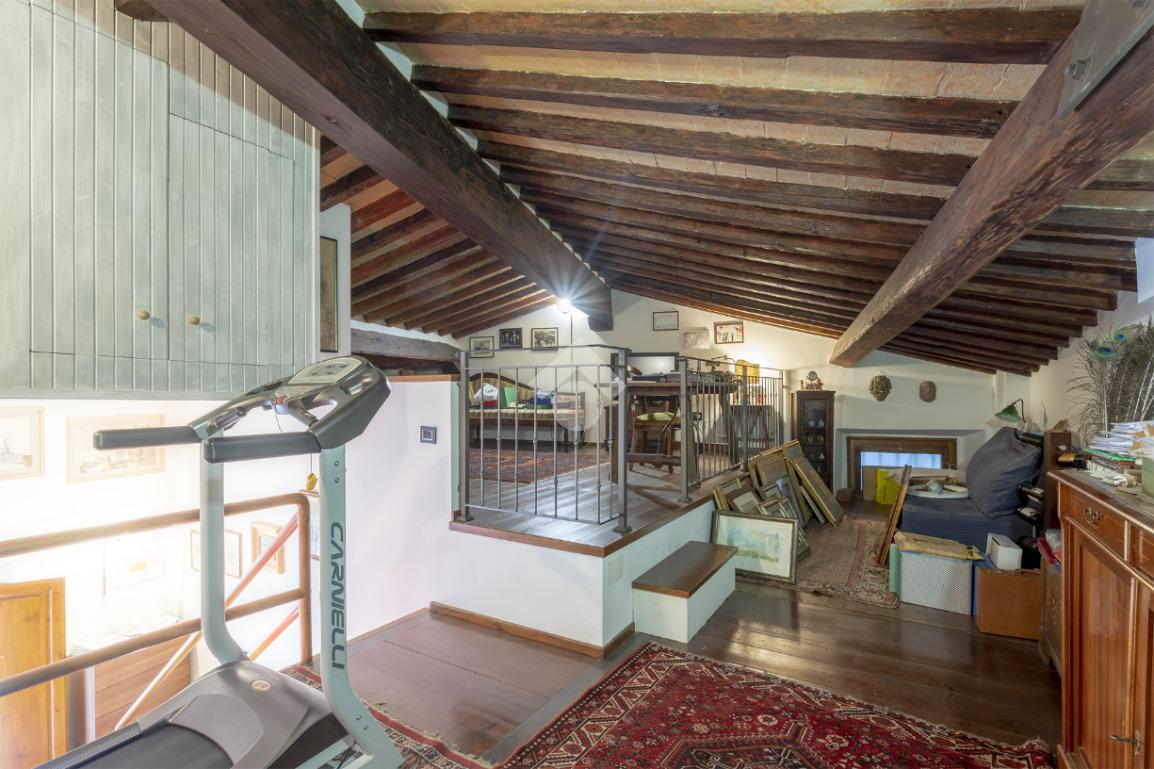 L'area soppalcata, suddivisa in due zone, è attualmente adibita a salottino, finestrata e con possibilità di ricavarci una terza camera.